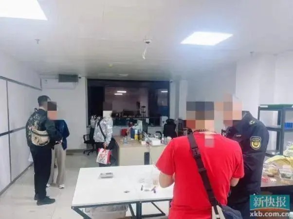 28日16時許,白云區(qū)棠景街打假隊員在鴻盈匯物業(yè)逐層摸排時,發(fā)現(xiàn)某樓層一工作室異常:門口密集安裝了6個高清監(jiān)控攝像頭,遠(yuǎn)超普通商戶安防需求;緊閉的金屬門縫下塞滿黑色塑料袋,刻意遮擋室內(nèi)視線。這一反常細(xì)節(jié)立即引起打假隊員的警覺,“普通商戶無需如此戒備,極可能存在違法行為!碧木敖蛛S即啟動“三人小組”快速聯(lián)動機(jī)制,召集公安、市場監(jiān)管局、打假專班骨干成立臨時研判組,部署突擊檢查方案。