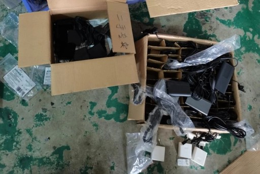 今年4月初,番禺警方接報(bào)在大石街轄區(qū)內(nèi)有人疑似制售假冒品牌的電腦配件。接報(bào)后,辦案民警立即展開偵查,發(fā)現(xiàn)在大石街一出租屋內(nèi)加工、銷售涉嫌假冒品牌注冊(cè)商標(biāo)的電源適配器、不干膠標(biāo)簽等電腦配件,價(jià)格明顯低于同類產(chǎn)品,且電源適配器的標(biāo)識(shí)模糊,沒有相應(yīng)的防偽碼。